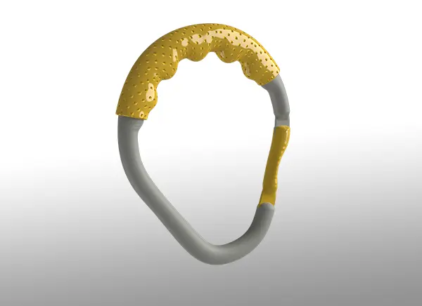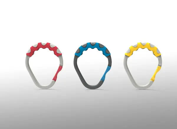 Le dispositif s’inspire du principe du mousqueton, reconnu pour sa fiabilité et sa simplicité mécanique. Le mécanisme d’ouverture repose sur une charnière mécanique intégrée, permettant une ouverture rapide pour connecter la laisse au collier tout en assurant une fermeture sécurisée. Le corps principal de l’objet est conçu dans un plastique technique rigide et résistant aux chocs, comme le polyamide (PA) ou l’ABS, offrant une bonne solidité tout en évitant les risques de casse lors de contraintes répétées. Afin d’améliorer la prise en main, une surmoulure en élastomère thermoplastique (TPE) est ajoutée sur la zone de contact avec la main. Ce matériau, légèrement souple et antidérapant, apporte confort, grip et absorption des pressions, tout en renforçant l’ergonomie de l’objet lors de l’utilisation.